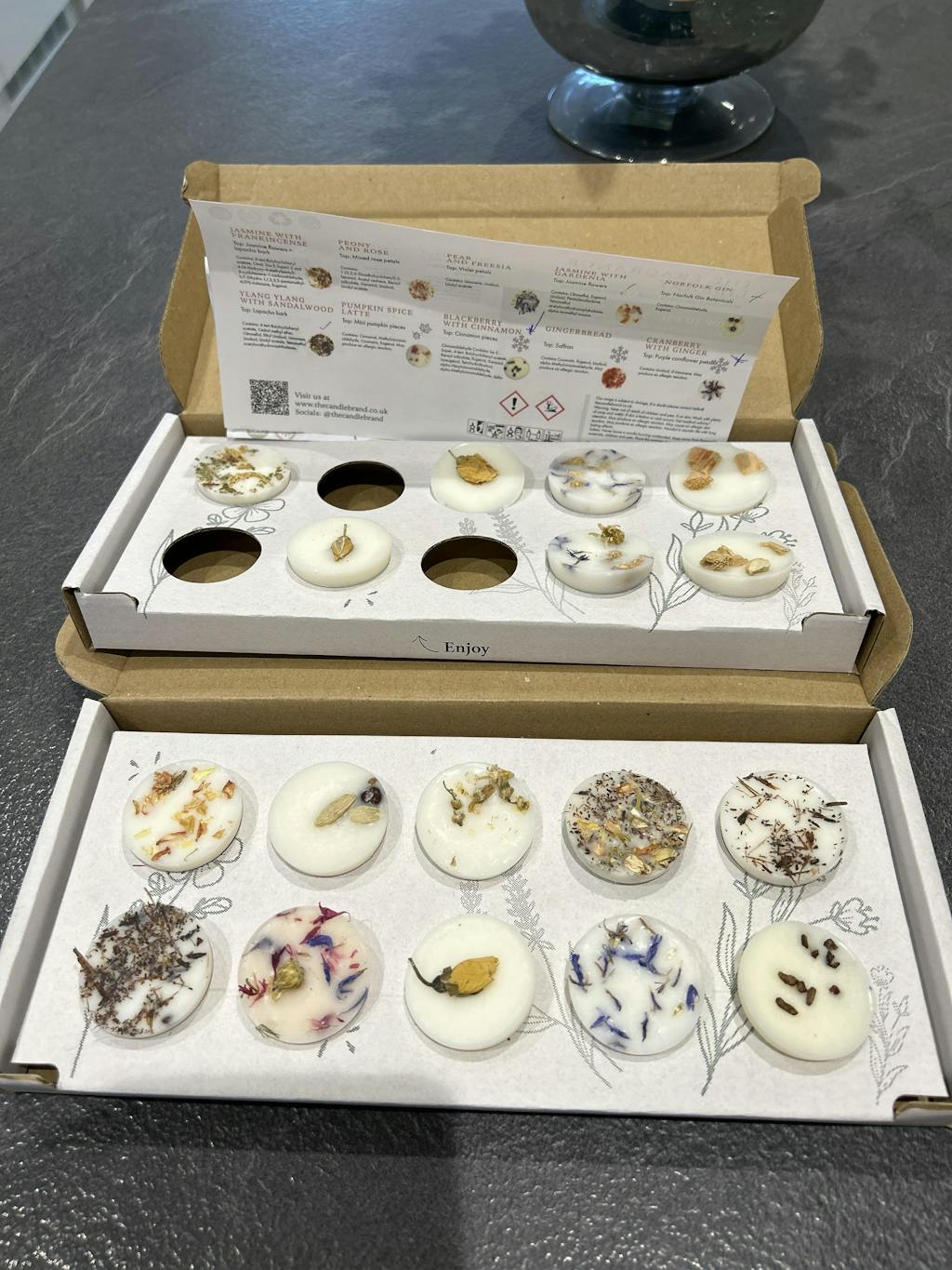 The wax melt box will contain a Fragrance Library information sheet, that will help you to identify your fragrances.